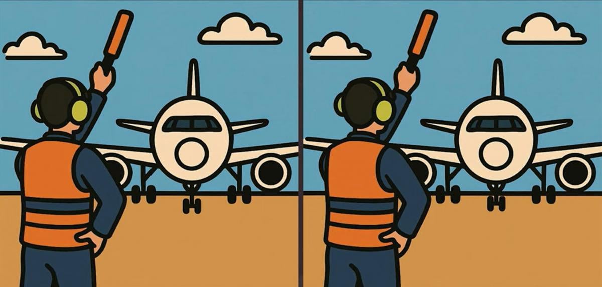 Ste pripravljeni na naslednji izziv? Pozorno si oglejte dve sliki letalskega kontrolorja, ki vodi letalo. Na prvi pogled sta morda videti enaki, vendar obstajajo tri majhne razlike. Menite, da jih lahko najdete v 45 sekundah? Poskusite in preverite svojo ostrino vida!