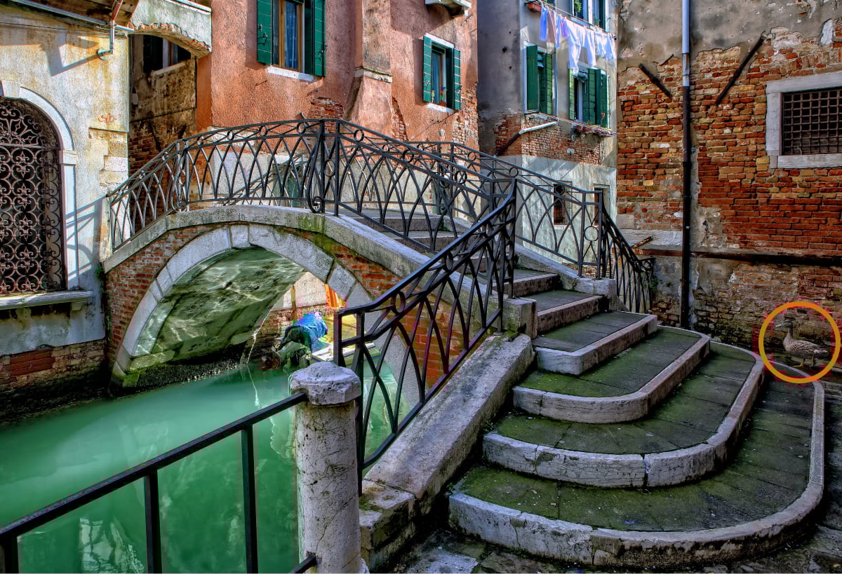 Če račke na sliki ne najdete, vam ponujamo majhen namig – pozorno si oglejte območje na dnu stopnic ob desnem robu slike.