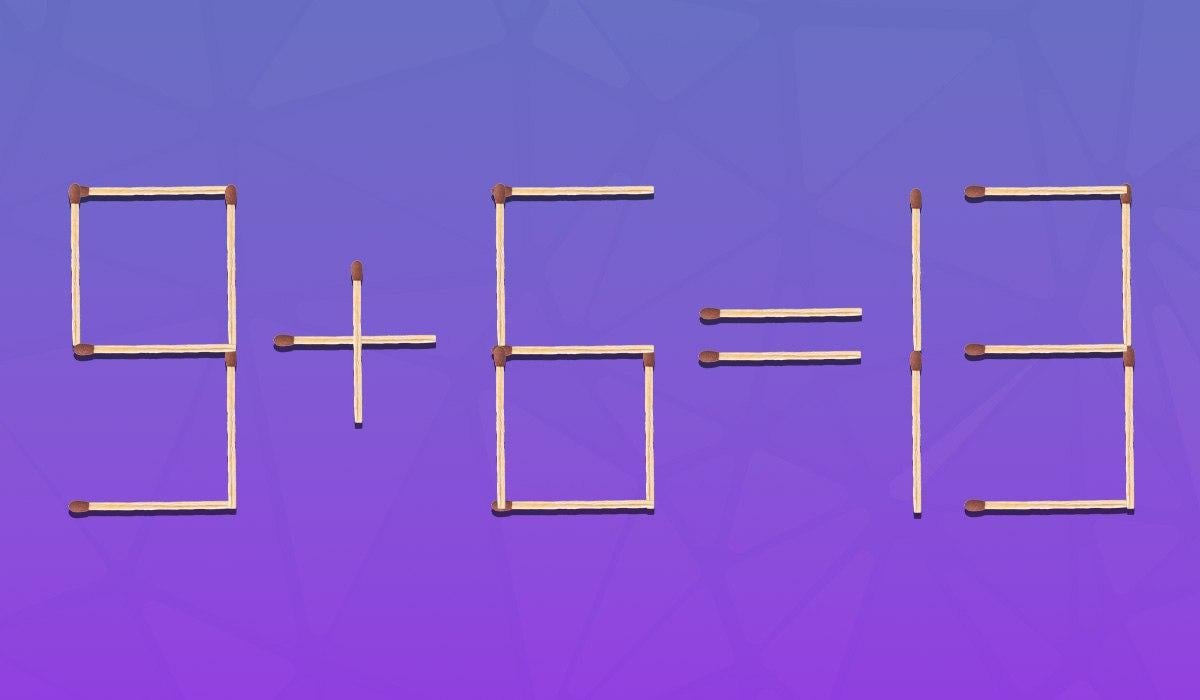 Spodnja uganka je namenjena ljudem z izjemnimi sposobnostmi koncentracije. Na sliki boste videli enakost “9+6=13”, ki je matematično napačna. Morate jo popraviti.