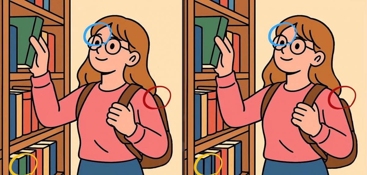 Ste pripravljeni na naslednji izziv? Pozorno si oglejte dve sliki deklice, ki v knjižnici izbira knjige. Morda sta na prvi pogled videti enaki, vendar so med njima tri majhne razlike. Ali mislite, da jih lahko vse najdete v 19 sekundah? Poskusite in preverite svojo ostrino vida!