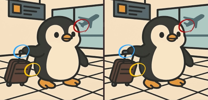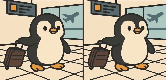 Ste pripravljeni na naslednji izziv? Natančno si oglejte dve sliki prikupnega pingvina, ki nosi prtljago na letališču. Morda sta na prvi pogled videti enaki, vendar se na njiju skrivajo tri majhne razlike. Misliš, da jih lahko vse najdeš v 61 sekundah? Poskusite in preizkusite svojo ostrino vida!