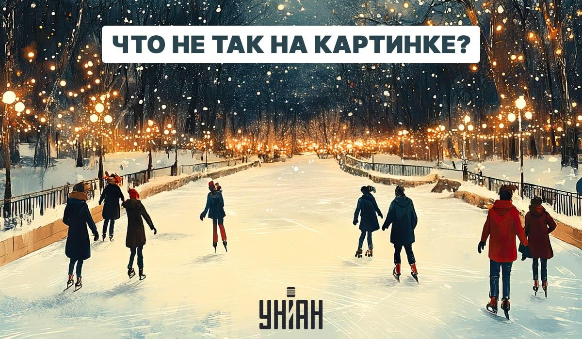 Pred vami je slika, ki prikazuje drsališče z obiskovalci. Čudovita pokrajina v zimski kulisi se na prvi pogled zdi popolna. Toda v resnici se v njej skriva groba napaka.